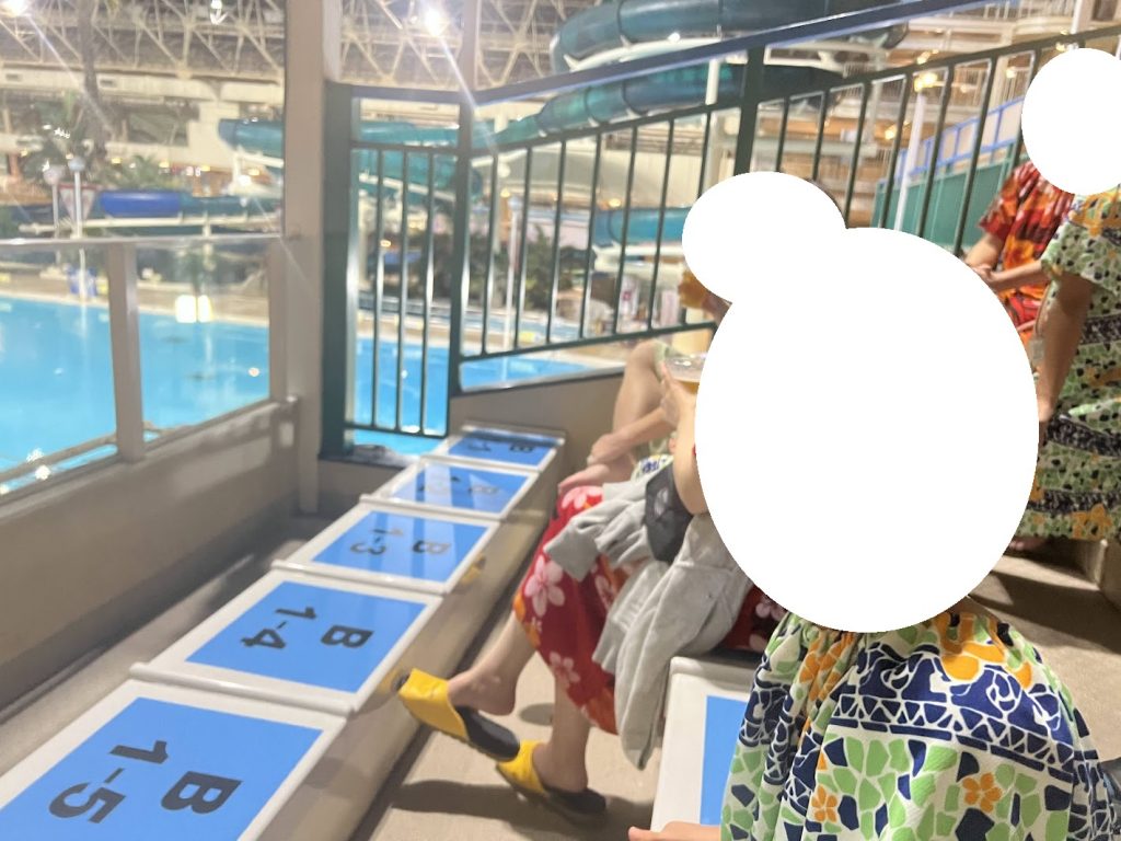 - 8:30 チェックアウト手続きを済ませ、荷物はフロントで預かってもらいます。そのまま水着に着替えて再入場。宿泊者特典で一般開場より少し早くプールに入れました。