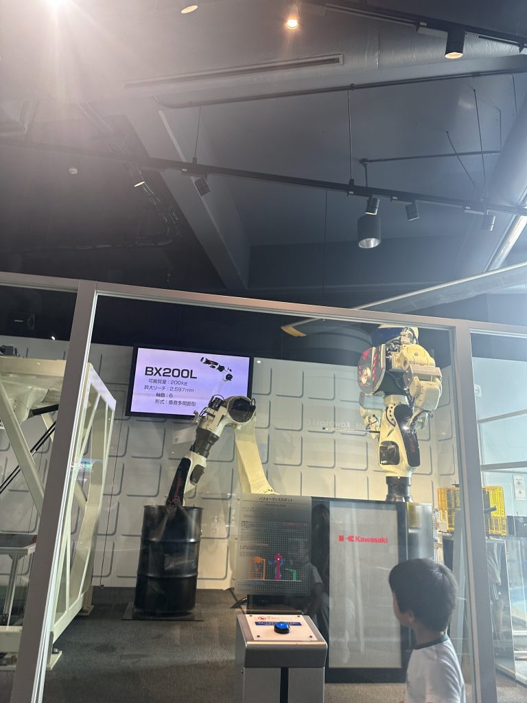 次に、館内併設のカワサキワールドでは、川崎重工グループが製造してきた陸・海・空の乗り物に実際に触れて楽しむことができます。乗り物好きの子どもなら一日中居ても飽きないほど、多彩な展示と体験コーナーが揃っています。なお、館内には川崎重工グループの120年以上にわたる歴史をたどる展示コーナーもあります。創業時代の船舶製造から鉄道車両、航空機、宇宙、産業用ロボットまで、時代ごとの代表的な製品や技術の歩みが紹介されており、親世代には懐かしい名機・名車に出会えるかもしれません。例えば、航空自衛隊のブルーインパルス(アクロバット飛行チーム)で使用されたジェット機に関する資料展示や、国産初の産業用ロボットの実物、昭和期に製造されたジェットスキー初期型モデルなど、マニア心をくすぐる展示も。こうした歴史的な展示物は大人にも見応えがあり、乗り物好きのパパも思わず夢中になってしまうでしょう。