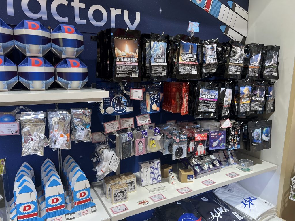 宇宙をテーマにしたお土産をもう一つ。「宇宙食」と呼ばれるものをご存じでしょうか?宇宙飛行士が宇宙で食べるために開発された食品で、フリーズドライ製法などにより長期保存できるよう工夫されたユニークな食べ物です。よみうりランドのSPACE factoryお土産ショップでは、この宇宙食も手に入ります。普段は科学館や宇宙博物館でしか見かけないような宇宙食ですが、遊園地のお土産として買えるのは珍しいですよね。